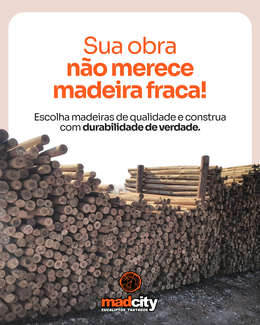 Madcity criada com o compromisso de fornecer eucaliptos tratados a clientes que exigem qualidade e valorizam o respeito ao meio ambiente.
